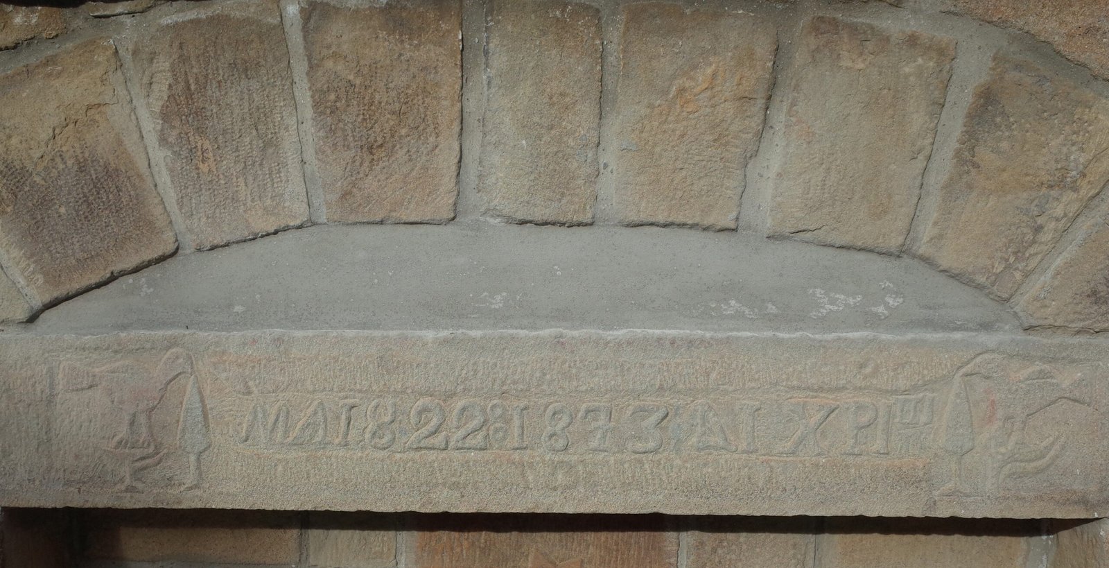 Εικόνα 3. Υπέρθυρο εισόδου Οικίας Παπανικολάου. Αναφέρεται η ημερομηνία μάχης της Σέλιανης τον Μάιο του 1822. Η επιγραφή αναφέρει: : «ΜΑ 1822: 1873 ΔΙ ΧΡΙ»